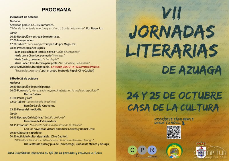 La localidad de Azuaga se prepara para vivir una nueva cita con la cultura los próximos 24 y 25 de octubre con la celebración de las VII Jornadas Literarias, que tendrán lugar en la Casa de la Cultura. Un completo programa de actividades acercará la literatura a públicos de todas las edades mediante talleres, ponencias, presentaciones de libros, coloquios y actividades paralelas.